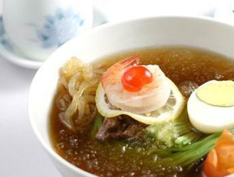 韓國的冷面想必都聽說過。在冰鎮的甜酸冷湯中,放著一團細細的面條,上面臥著兩塊白煮蛋,還有兩片水梨或蘿卜,十分好吃。冷面主要有用蕎麥面做的平壤冷面和用土豆做的咸興冷面,食用方法也可分為加湯的和用辣椒醬拌的兩種,口感十分筋道光滑。炎炎夏日,盤腿一坐,來一碗加冰冷面,爽呆了!|