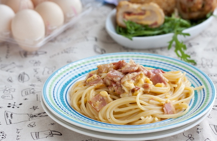 培根芝士意面:培根意面想必大家都不會陌生,用芝士片就可以來做,需要做的是把芝士片切成碎末,然后拌上雞蛋和黑胡椒,倒在有余溫的意面中,靠意面的溫度使芝士融化,粘稠的還沒完全融化的芝士,拌在意面中,芝士的香濃粘稠和芝士的顆粒在口中融合,味道非同一般哦。
