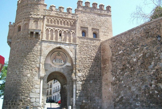 比薩戈拉門:由于東西、南有塔霍河隔斷,這是唯一能進入古城的一道城門。門上刻有西班牙國王卡洛斯一世帝微----帝國皇鷹。在城墻上刻有西班牙文學大師塞萬提斯給拖萊多的題詞:“西班牙之榮,西班牙城市之光。”
