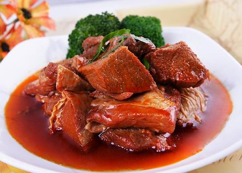 紅燒牛肉:是一種味道濃烈,由奧地利的臨邦匈牙利傳入維也納的菜肴。作法為將切成塊狀的牛肉放在紅辣椒調成的調味汁里烹調而成。