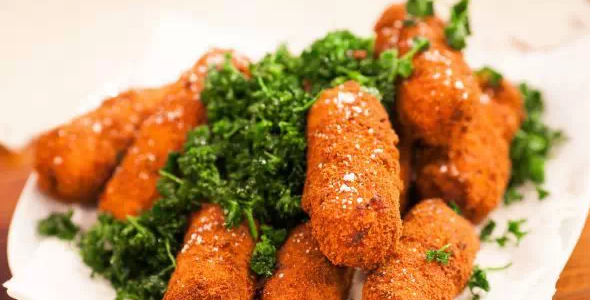 炸蝦丸:是炸丸子的意思,crevettes 是蝦的意思,大部分做的是長條狀的,有時也會是丸子狀。比利時最普遍的做法是選用當地的特產灰蝦做內餡。味道還是不錯的,但熱量有點高,不適合愛美的減肥人士。
