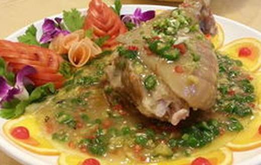 雪維菜燉膳魚: 雪維菜又名 車窩草又稱雪維菜、峨參、庭院細葉香芹,為傘形花科峨參屬一年生草本植物,原產歐洲南部。嫩莖葉可食,葉中含豐富的維生素、礦物質及揮發性芳香油,味道類似茴香,能促進食欲,應用歷史久遠,可追溯到古羅馬時代,和膳魚燉在一起,清香撲鼻,美味無比。