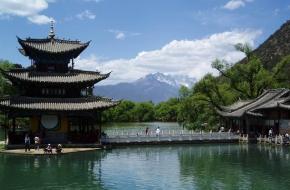 黑龍?zhí)逗喗椋?/b> 黑龍?zhí)端追Q龍王廟、玉泉公園。位于麗江古城北端象山之麓,二股泉水從象山腳下的古栗樹下涌出,匯成面積近4萬平方米的水潭。泉水清澈如玉,水面開著潔白的海菜花,水底游魚如梭,潭畔花草樹木繁茂,樓臺亭閣點綴其間,風(fēng)景秀麗。 清朝乾隆二年(公元1737年),建玉泉龍神祠,清嘉慶十七年(公元1812年)和光緒十五年(公元1889年),玉泉曾兩次被清朝皇帝敕加“龍神”封號,使黑龍?zhí)睹兄袊麧M天下,后又修建了得月樓、戲臺、萬壽亭、五孔橋等園林建筑,新建了象山游路,解放后,遷入明清古建筑五鳳樓、解脫林、光碧樓、忠義坊石獅、文明坊、一文亭等園林建筑,中國著名的歷史學(xué)家方國瑜教授的墳?zāi)挂舶卜旁诤邶執(zhí)鹅o溢的山林中。黑龍?zhí)洞箝T上的“黑龍?zhí)?rdquo;三個字是原省書法協(xié)會會長,納西族書法家李群杰所題寫。1963年重修得月樓時,郭沫若應(yīng)邀題寫了“得月樓”三個字及兩副楹聯(lián)。1981年,東巴文化研究所在黑龍?zhí)冻闪ⅲ购邶執(zhí)都袊L(fēng)景園林之大成,又兼有深厚的文化底蘊。 近十年來,先后有十多位黨和國家領(lǐng)導(dǎo)人到黑龍?zhí)犊疾欤型庥慰徒j(luò)繹不絕。黑龍?zhí)冻蔀辂惤酥猎颇下糜尉包c中一顆璀璨的明珠。我們?yōu)榱俗非笮碌陌l(fā)展目標(biāo),適應(yīng)市場需求,實現(xiàn)與國際接軌,實施了ISO9001:2000和ISO14001:1996國際標(biāo)準(zhǔn)認(rèn)證,旨在提高整體質(zhì)量/環(huán)境管理水平和服務(wù)質(zhì)量,謀求經(jīng)濟效益、社會效益、環(huán)境效益的同步增長。