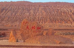 當(dāng)年美猴王齊天大圣孫悟空大鬧天宮,倉卒之間,一腳蹬倒了太上老君煉丹的八卦爐,有幾塊火炭,從天而降,恰好落在吐魯番,就形成了火焰山。山本來是烈火熊熊,孫悟空用芭蕉扇,三下扇滅了大火,冷卻后才成了今天這般模樣。