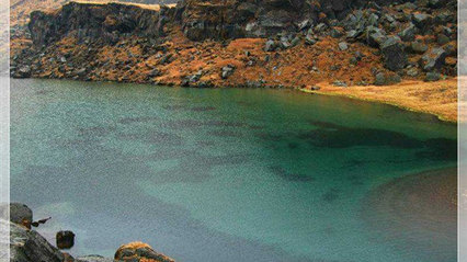 登高俯視,一個碧藍,一個赤黃,好似一對金銀杯,所以人們又稱小天池為對杯湖,別具景色。
