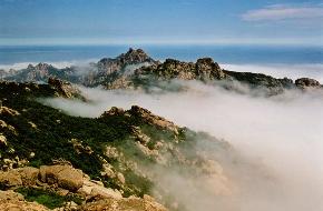 1.巨峰旭照:巨峰是嶗山主峰,俗稱“嶗頂”,位于嶗山中部群峰之中,海拔1127.3米。“云海奇觀”、“旭照奇觀”、“彩球奇觀”是巨峰景物中的三大奇觀。特別是“旭照奇觀”,綺麗壯美,被列為嶗山十二景之冠,稱“巨峰旭照”。清代乾隆年間即墨知縣尤淑孝有詩贊曰:“振衣直上最高峰,如發扶桑一線通。只有仙靈營窟宅,更無人跡惹天風。群山岳岳憑臨外,大海茫茫隱現中。持較岱宗應特絕,碧天咫尺彩云紅。”
