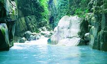 幽谷神潭自然風景區位于懷柔區懷北鎮椴樹嶺村北,云蒙山南麓,據北京市75公里,景區總面積約6平方公里。幽谷神潭風景區在解放前曾建有龍王廟,傳說古代大旱時,農民抬著整豬、整羊到龍王廟求雨,有一年大旱時,龍王命雷公電母興云造雨,雷劈石就是雷公電母在和旱魃作戰時,用利劍劈倒旱魃,也同時把這塊巨石劈成兩半。初到飛瀑潭,游人方以為已到了山谷盡頭,誰知“山窮水復疑無路,柳暗花明又一村”。就在飛瀑潭一側,有一條石雕穿云的登山梯道,巖石上刻有篆書 “天梯”二字,沿天梯上行,步步高登,方知山外有山,天外有天,瀑外有瀑,潭外有潭。到了山頂,神潭風景區主要景區,神潭瀑和神潭以其雄奇的姿態呈現在游人面前。但見神潭瀑由十幾米高處下瀉,匯成方圓30米的神潭,碧綠的潭水清澈見底,游魚可數,一塵不染,景色迷人。