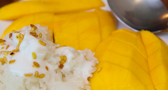 芒果糯米飯:芒果糯米飯是泰國特色的甜品小吃,將芒果整顆切塊裝入盤中,另一側放入淋上椰汁的糯米飯,賣相十分簡單,可是令人意想不到的是,這么簡簡單單的組合,竟然能在口里發生神奇的“反應”。北京旅行社工作人員表示,芒果是甜中帶一點點的酸,這一點點酸,在口中品得分外清晰,就那一瞬間,酸味就被糯米飯的甜味給融化了,可這一瞬間融化的感覺,又是這樣絲毫不落地在口中就能品味得到。糯米飯和芒果實在是配合得天衣無縫。