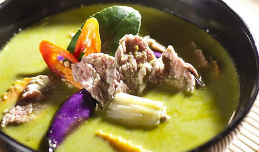 綠咖哩:又稱青咖喱,是泰國咖喱中較辣的一種。主要成分包括椰奶、綠咖哩醬、茄子、魚露、青檸檬等。可以和各種肉類搭配做菜,比如綠咖喱牛肉、綠咖喱椰子雞。也可以與面條和飯互相搭配。