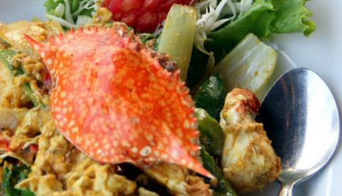 咖喱炒蟹:極受歡迎的泰國名菜,切塊的紅蟹加上配菜與咖喱和各式香料共炒,突出蟹肉的鮮味與彈性,風味獨特。