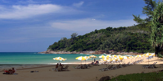 奈漢海灘:奈漢海灘是一處高山環(huán)繞的深水灣,南北兩端有陡斜的石崖,風(fēng)景獨(dú)特。海灘兩邊有山,在山上可以觀賞海灘全景。這里沙細(xì)浪平,適合開展各式水上活動。泰王杯船賽就在這里舉行,每到比賽季節(jié),這里總會出現(xiàn)許多船賽的運(yùn)動員。