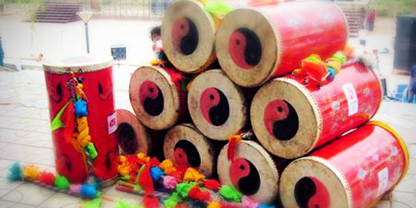 太平鼓有“天下第一鼓”之美譽,蘭州的太平鼓舞,以舞姿優美、風格獨特而著名,其中尤以“秧歌鼓舞”最為精妙。表演者一律頭戴英雄帽,身穿皂隸服,腰系灰絲帶,腳蹬麻窩鞋,肩背太平鼓。領隊以一面扎有紅綠繡球的竹竿統一指揮,表演者根據指令,右手緊握鼓繩,左手不停地將鼓身舉架到不同方位,一邊擊鼓一邊舞蹈,熱烈歡快,氣勢非凡。