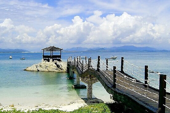 5、電話:島上設有公用電話停,房間的電話在總臺交押金后就可開通外線,度假村及附近的海灘、山上的觀日巖都有手機信號。
